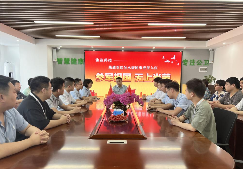 2022年8月17日,協(xié)達科技在公司1號會議室舉行員工入伍歡送會,公司全體在昌員工齊聚一堂歡送吳永豪同事光榮入伍。