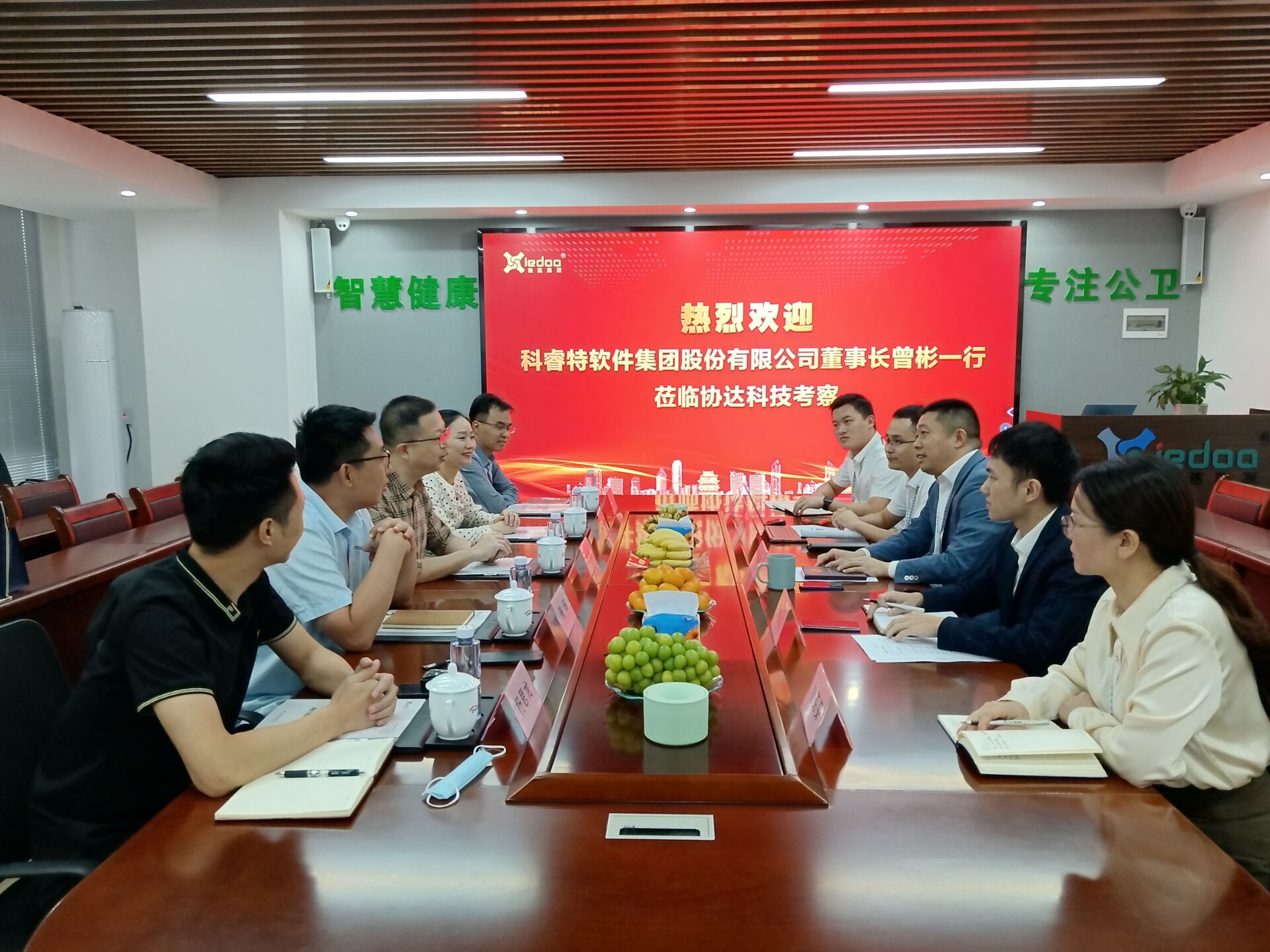 10月5日下午,科睿特軟件集團(tuán)股份有限公司董事長(zhǎng)曾彬、夫人程麗敏女士及集團(tuán)高管一行數(shù)人蒞臨我司考察交流。公司總經(jīng)理陳尚嶸、副總經(jīng)理石植良等人熱情接待,雙方就戰(zhàn)略合作方向及內(nèi)容進(jìn)行探討交流。